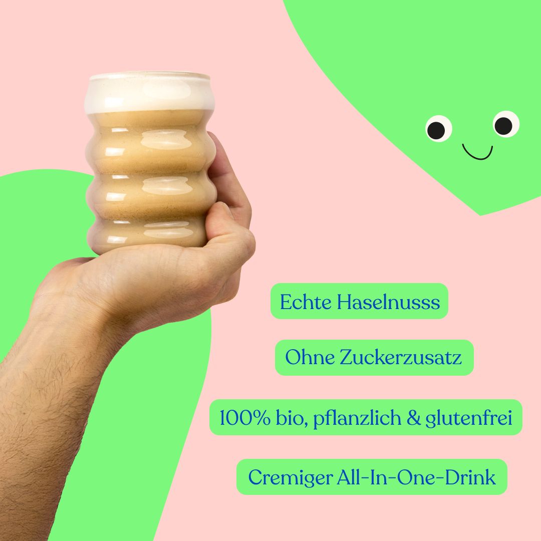 Unser cremiger Hazelnut Oat Latte steckt voller natürlicher Bio-Zutaten und schmeckt wie deine Lieblings-Nuss-Nougat-Creme – nur noch besser.